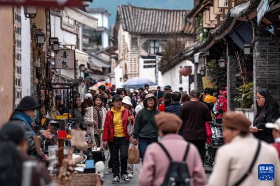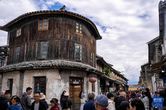 近日,云南省大理市喜洲古镇风和日丽、景色怡人,吸引游客纷至沓来。