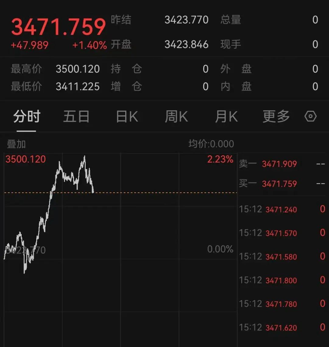 今日午后,现货黄金一度冲上3500美元,为历史首次,截至发稿,现货黄金回落至3471美元左右,COMEX黄金则回落至3494美元左右。不过,在今年,现货黄金涨幅已超过30%。